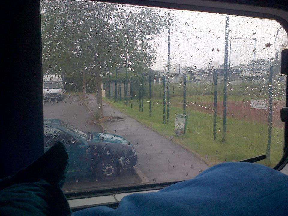 I’m already more than 100 miles from Paris, though, so half way to Luxembourg. I’ve noticed my lower legs are solid but my upper legs have become quite supple, like a cats arm. I didn’t expect that. Each day is the same but different. Quiet country roads for 30 miles, a wee sleepy village ever other hour, big dogs bark as I pass. I’ve seen every cute wee woodland creature of France flattened and dried out at the side of the road and the occasional porn. What’s that about? Do people drive around the countryside throwing porn out their window? Or is a customary here to take your porn on a long walk and forget to bring it back? Who knows…The wee villages are always closed. Where does everyone go? They all have a ‘Tabac cafe’ which sells cigarettes and lotto tickets but never bottles of water and there’s always a wee square pond thing with a simple running fountain and sometimes a wooden roof. I wonder if they are the original town wells from way back before the dawn of pluming. Most Villages also have half-life-size crucifixes in the centre but many have fallen into disrepair, which perhaps signifies the church’s hold on these communities is less than it was.