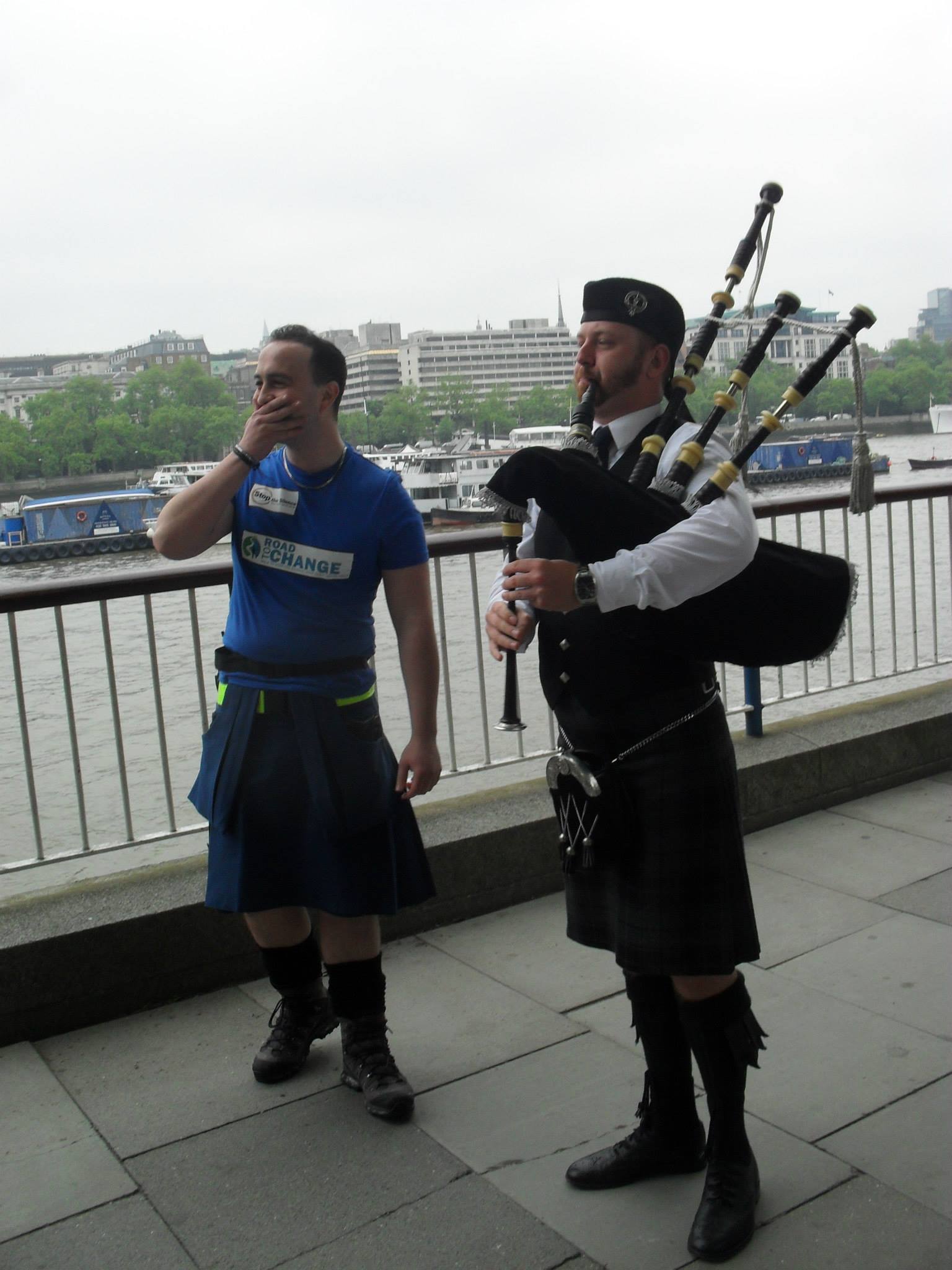 And so the Road to Change began, with a wee stroll along the Southbank through busy Londoners and bemused typical tourists watching the crowd of us holding ‘Road to Change’ balloons, keeping pace behind Alex as his pipes blared out ‘Scotland the Brave’. I haven’t much thoughts on this moment, I just recall looking at my feet as they began to walk and thinking ‘One, two, three, four, five, six…’